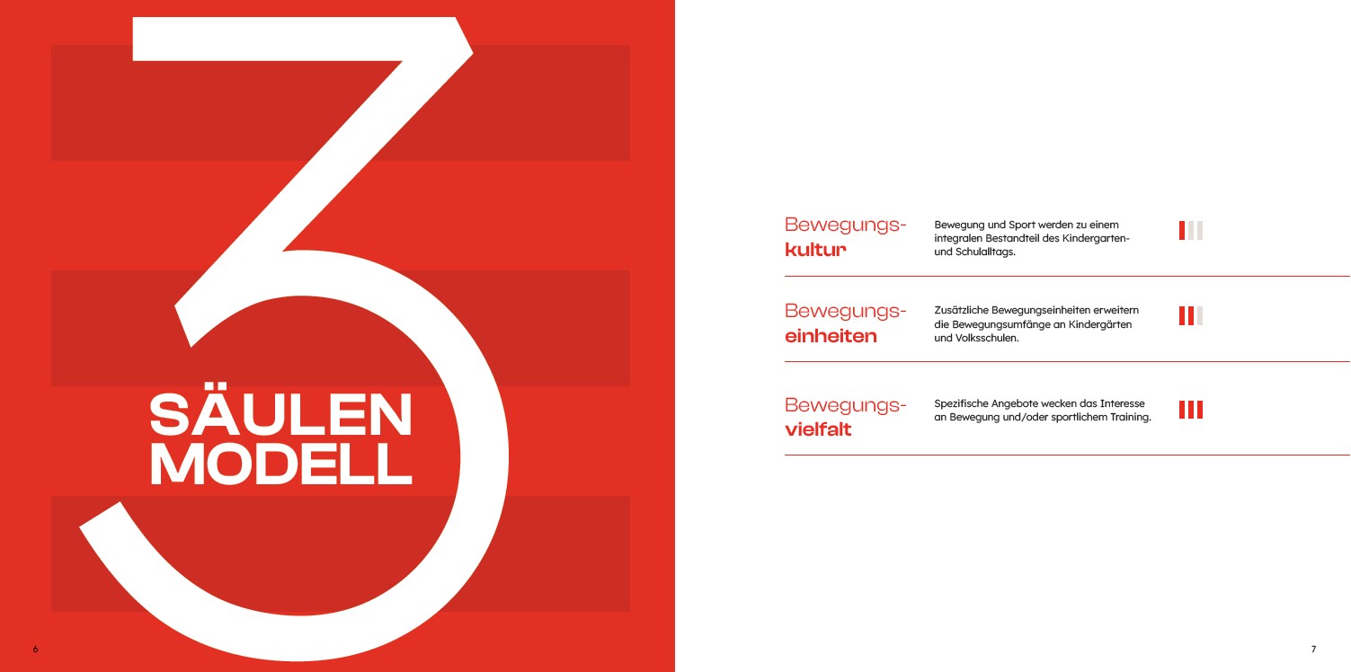 Das Projekt basiert auf einem 3-Säulen-Modell, durch das die Österreichischen Bewegungsempfehlungen von Kindern in den teilnehmenden Kindergärten sowie von Schüler*innen in der Volksschule und der Sekundarstufe I erreicht werden.